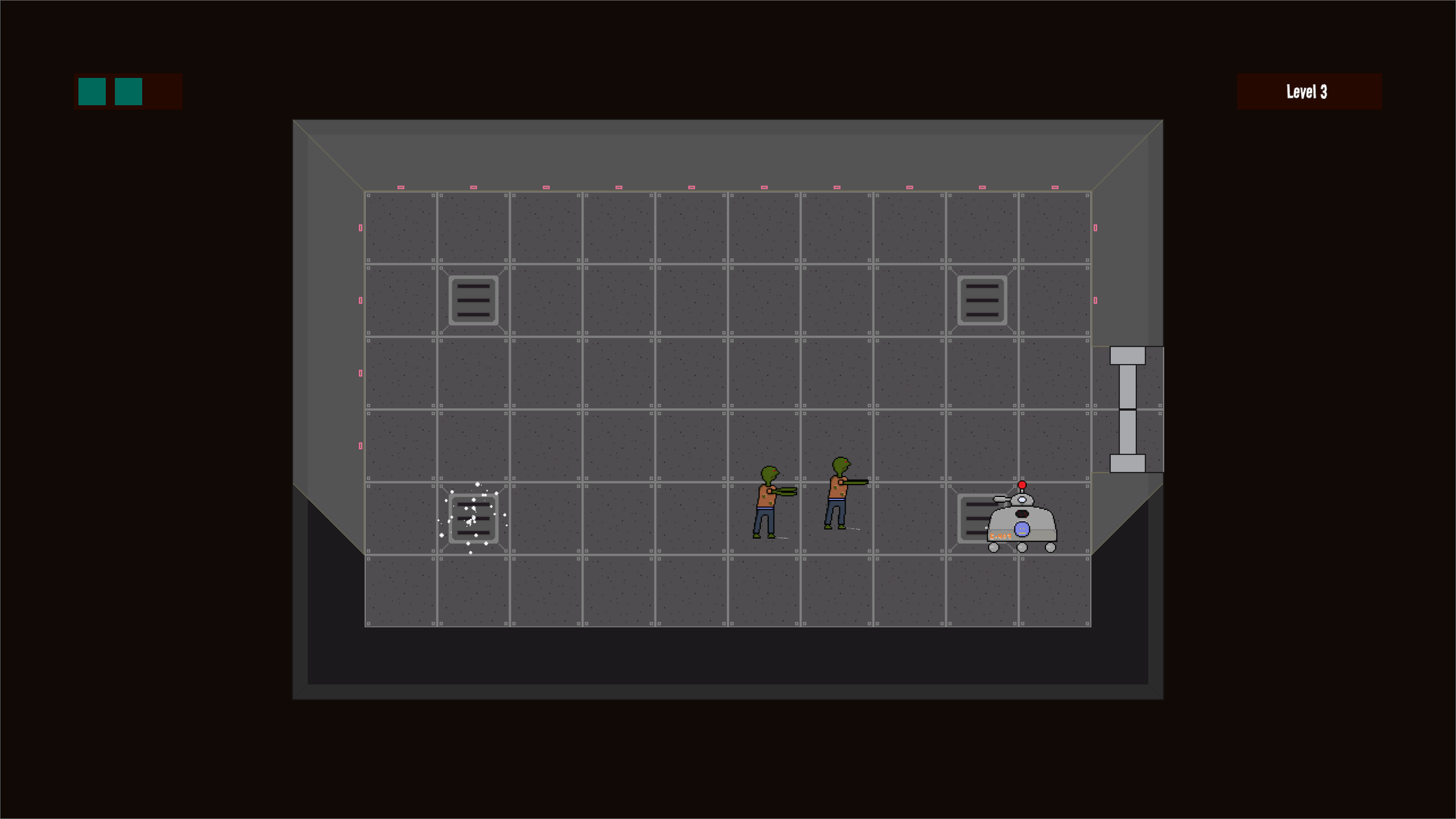 Play as C-407, a cleaning robot tasked with keeping an elevator clean. Unfortunately, someone keeps sending the elevator to levels full of zombies and there are zombie sludge in the air ducts.