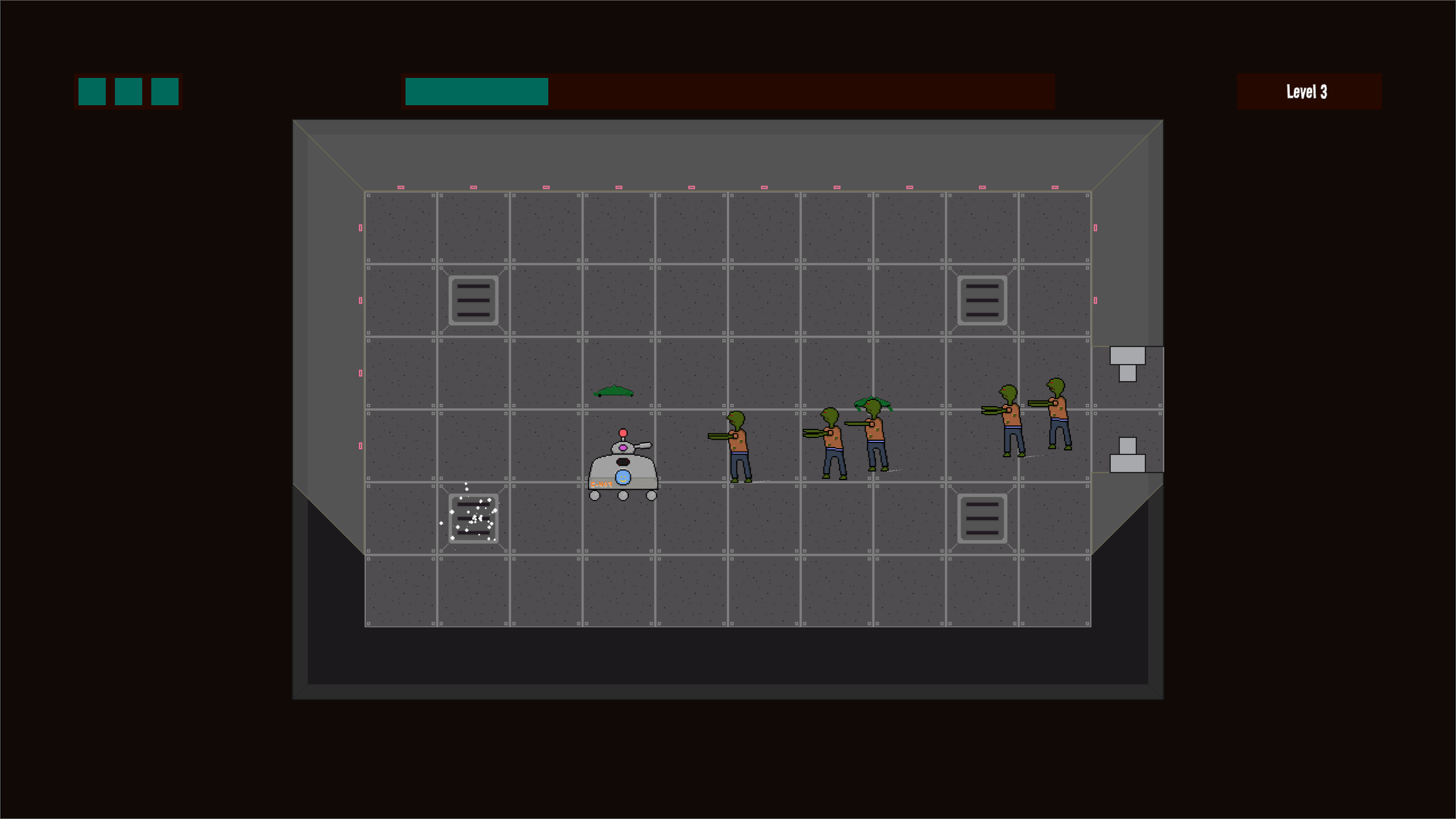 Play as C-407, a cleaning robot tasked with keeping an elevator clean. Unfortunately, someone keeps sending the elevator to levels full of zombies and there is zombie sludge in the air ducts.
